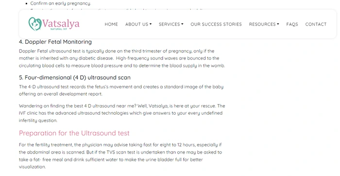 When you visit Vatsalya’s website, you will immediately notice that there is a lot of information that many other similar websites do not provide. There is information about their services and who those services are best suited for. The site also mentions the possible underlying conditions, prerequisites, and other important information for these services, that many users are not usually privy to.