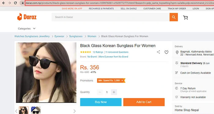 Since the entire website for Daraz Nepal is dynamic, the URL structure for the website is complicated. The URL does not provide a clear hierarchy of categories and subcategories. However, they have included the product’s name and keywords in the URLs.